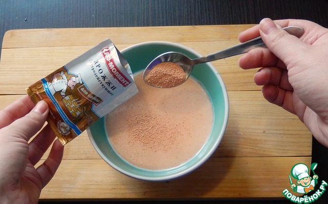 В теплом молоке растворяем дрожжи для сдобы, и одну столовую ложку муки, ждем пока опара не начнет подниматься.