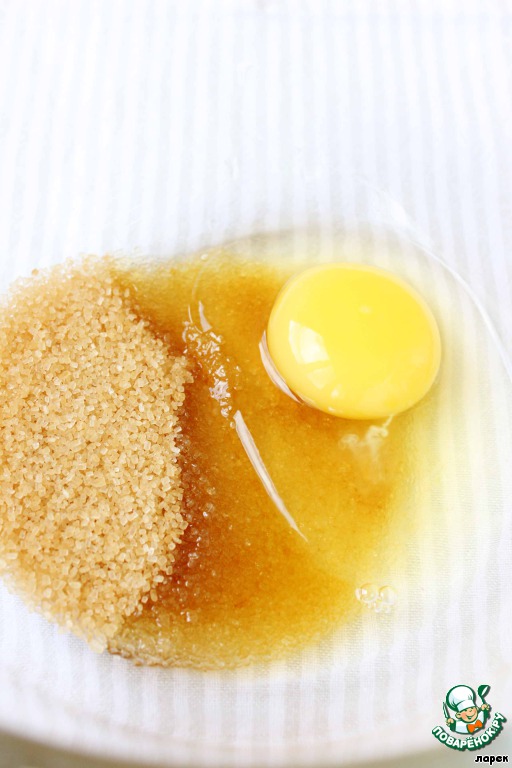 Взбить яйцо с коричневым сахаром.