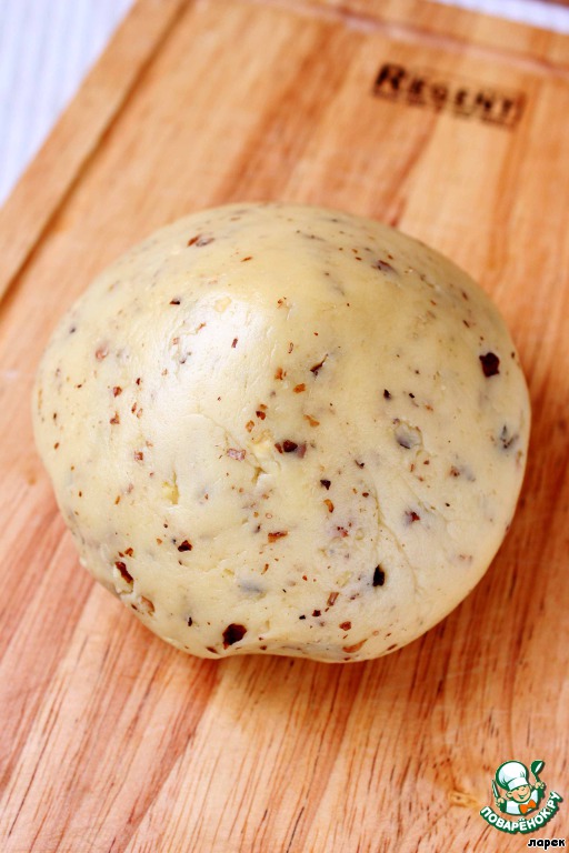 Затем добавить дробленые орехи и вымесить тесто еще раз.