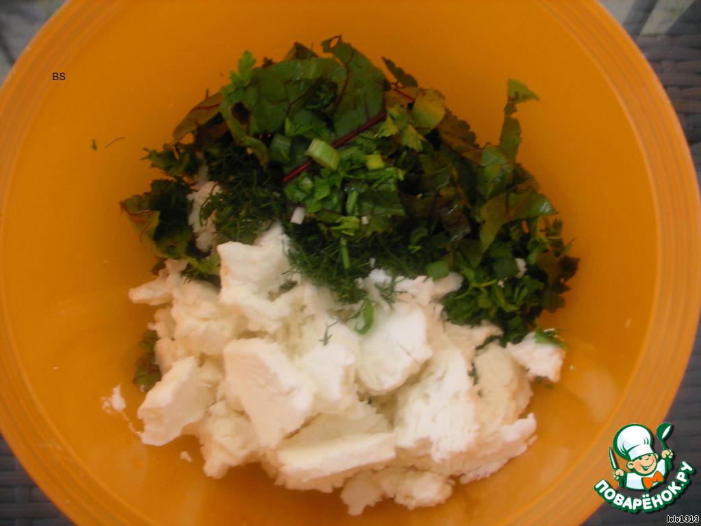 2)ботва свёклы + зелёный лук + зелень + сыр + соль, перец.