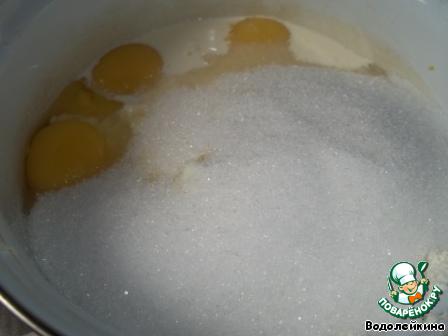 От 4 яиц отделить желтки. Одно целое яйцо и 1 желток растереть со стаканом сахара добела, добавить размягченное сливочное масло и муку, вымесить тесто, завернуть его в пленку и убрать в холодильник на 30 минут.
