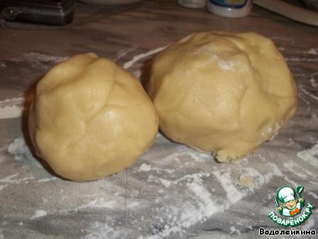 Охлажденное тесто разделить на 2 части – побольше и поменьше.