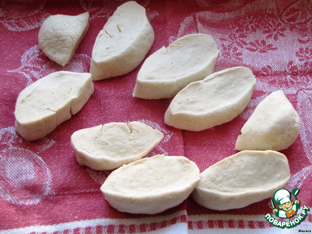 Теперь каждую часть раскатываем тонко максимально вожможным овалом. Это важно!