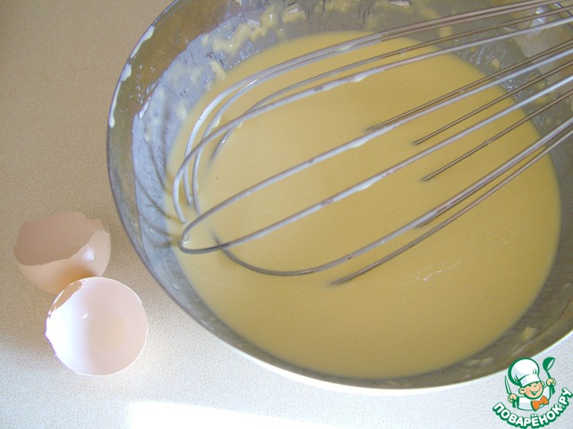 Тесто можно приготовить сразу блендером. Если его нет, то вначале сделайте густое тесто, а затем, помешивая, добавляйте оставшееся молоко, чтобы не было комочков. Дайте тесту постоять минимум полчаса.