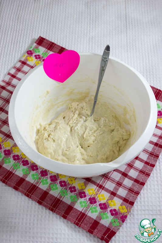 Накрываем тесто пленкой и оставляем для подъема не менее чем на два часа.