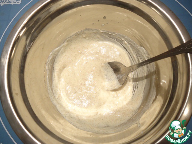 К этому времени дрожжи со сметаной и сахаром должны немного подойти.