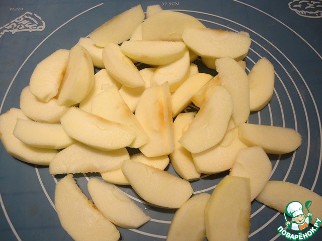 В это время мою и очищаю яблоки и режу их на дольки. Если Вы любите корицу, то посыпьте яблоки. Моя семья корицу не любит, поэтому я делала без нее.