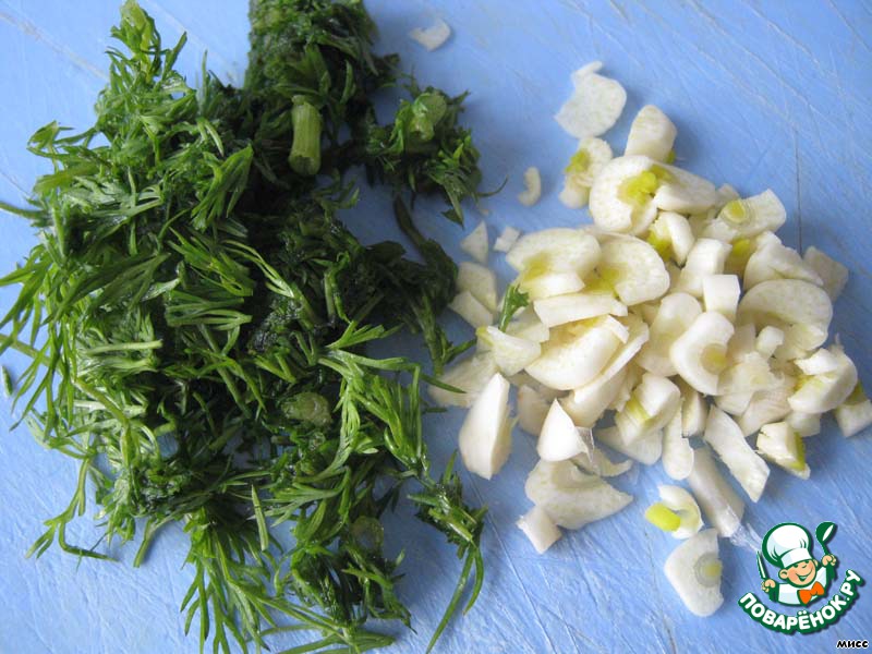 Мелко режем укроп и чеснок.