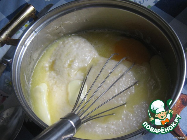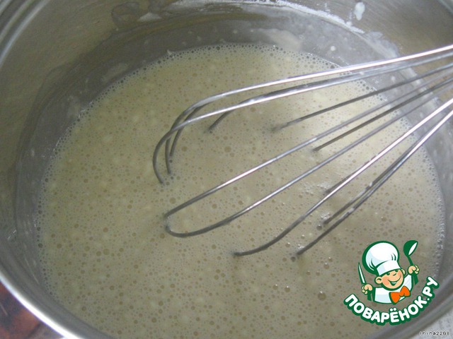 Нагреть молоко, растворить в нем дрожжи, сахар и ванильный сахар.