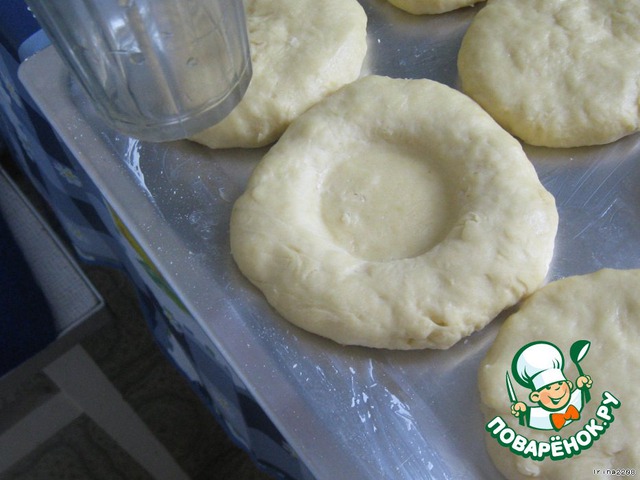 Заполнить начинкой и смазать края желтком (у меня яйца домашние и цвет канареечно-желтый поэтому).