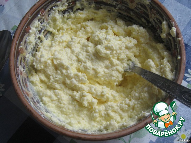До однородной массы. Начинки хватило впритык,поэтому творога можно брать больше.