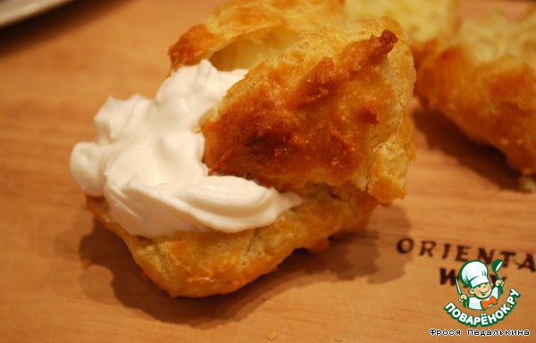 Кстати, если заполняете сливками, лучше делать это перед подачей, т.к. они могут размягчить тесто и привести к потери вкуса.