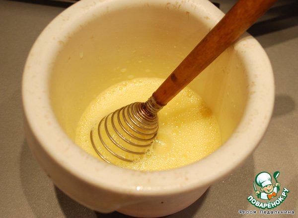 Должно получиться однородное тесто. Кастрюлю снять с огня и немного остудить (до 60-70 гр).
