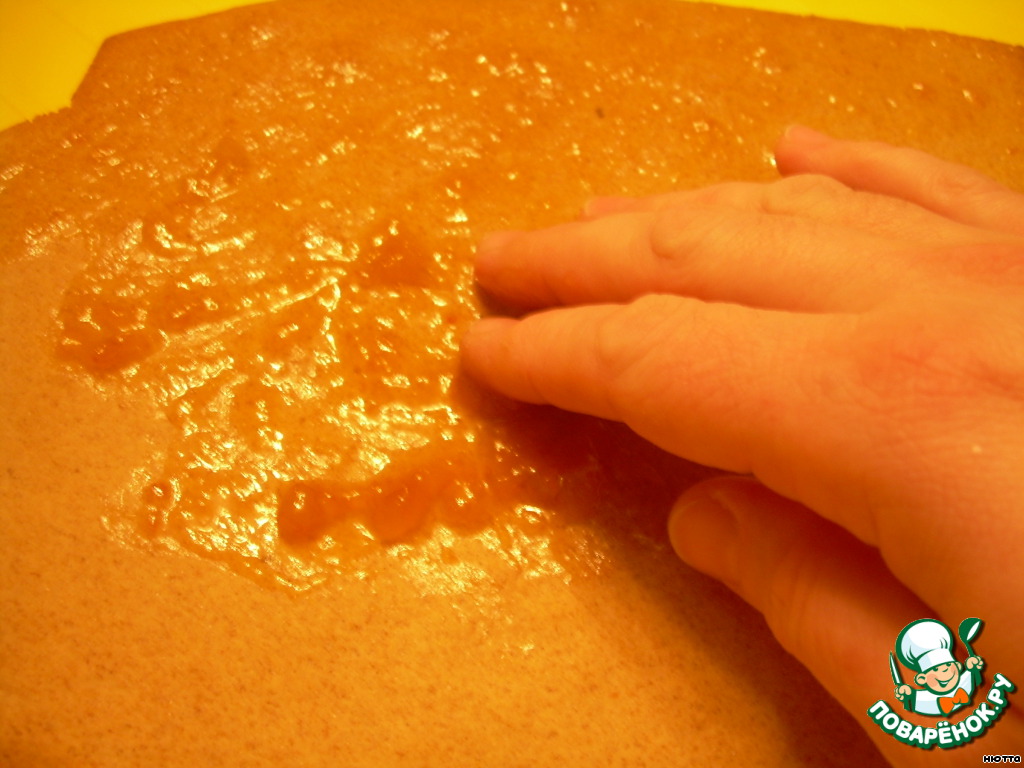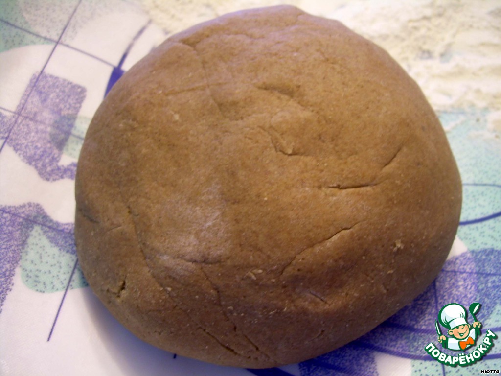 Возьмём половину порции муки (ржаной и пшеничной), соорудим горку с углублением и вольём туда мёд, замешиваем тесто. Из всего количества масла возьмём 50 г, растопим, вольём в наше тесто и продолжаем месить, пока масло не остынет... Соду развести в роме или коньяке, добавить к тесту, вымесить... Яйца взбить с сахаром и тоже добавить к тесту, оставшуюся половину муки добавить, и всё тесто, что у нас получилось, месить до гладкости, мягкости и однородности...