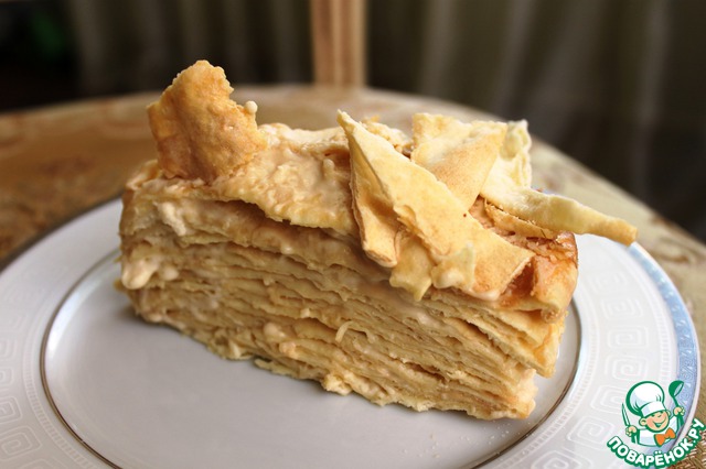 | Те, кому нравится подтаявшее мороженое в вафельном стаканчике, Вам непременно сюда! Этот торт визуально напоминает всем известный Наполеон, но вот на вкус... Советую попробовать! P.S. Порцию крема можете увеличить и из оставшегося приготовить мороженое, подробности в рецепте. |