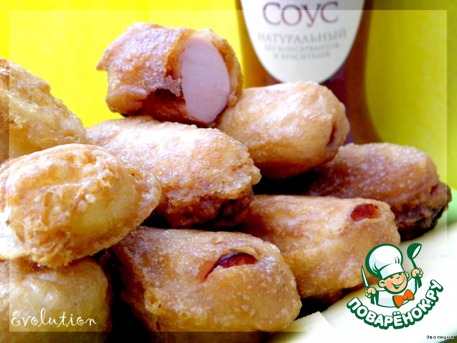 | Просмотрела предложенные "Поваренком" обжаренные сосиски в тесте, подобного не обнаружила. Утром возникла необходимость оперативно приготовить что-то, чем можно быстро перекусывать в течении рабочего дня, и что годилось бы к сладкому чайку-кофейку)))) |