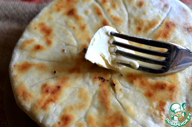 Обжаривают лепёшки с двух сторон на сухой сковородке и горячими смазать сливочным маслом.