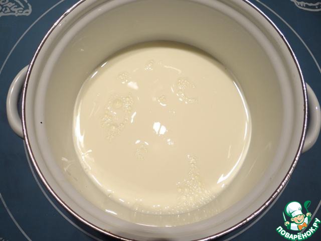 В это время готовлю заварной крем. Молоко довожу до кипения.