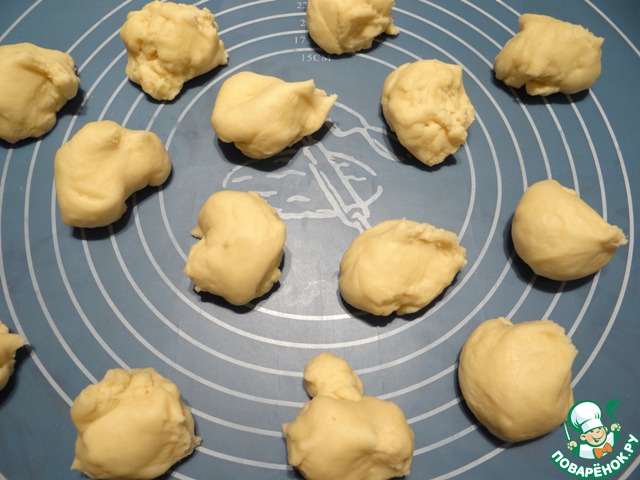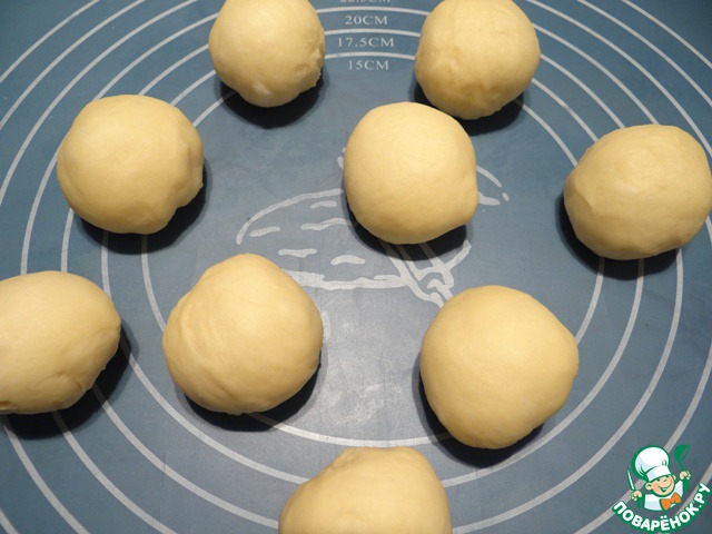 Формую из кусочков теста шары, накрываю их пленкой и оставляю отдохнуть минут на 15.
