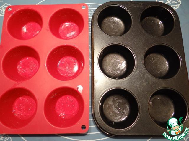 Для выпечки корзинок я использую вот такие формы для кексов (диаметр каждой ячейки около 6,5 см). Смазываю формочки растительным маслом.