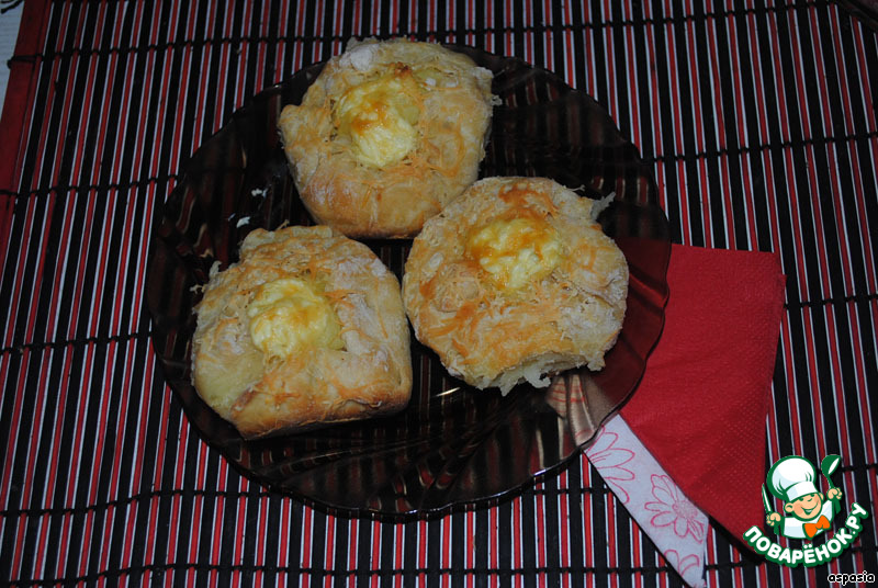 Духовку разогреваем до 180 градусов, ставим наш противень в нее и ждем минут 20, пока сыр не зарумянится. Готово!!! Вынимаем и НЕМЕДЛЕННО - под полотенце весь поднос или снимаем выпечку с противня и кладем в кастрюлю, закрывая крышкой. Бабушка укладывала в специальный таз и укрывала полотенцем.