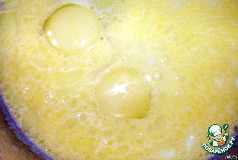 Смешаем растопленное сливочное масло, соль, сахар, растительное масло, яйца.