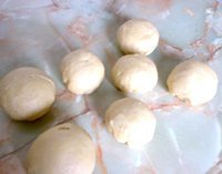Берем тесто и делаем 7 шариков, 5 из которых должны быть примерно 120г, а 2шарика - 220г. Сыпем муку на стол и начинаем раскатывать каждый шарик при помощи скалки на тоненькие лепешки, заметьте, что те шарики, что больше должны получиться чуть толще, так как одна слойка будет самой нижней, а другая -самой верхней и те , что меньше, будут лежать между.