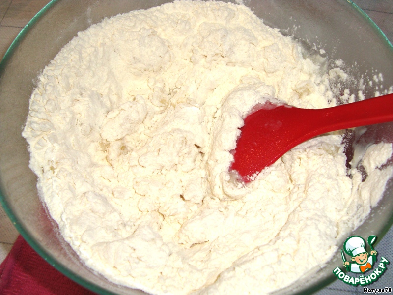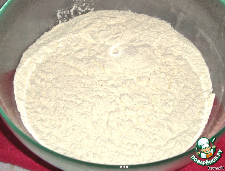 В емкость, где будем замешивать тесто, высыпаем 400 г муки.