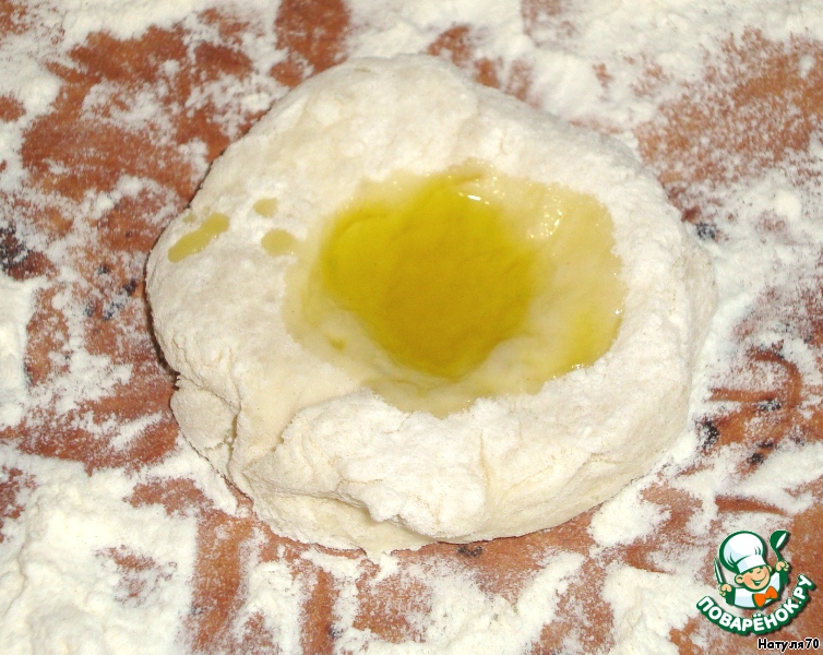 В серединке делаем углубление пальчиком, заливаем несколько капель масла.