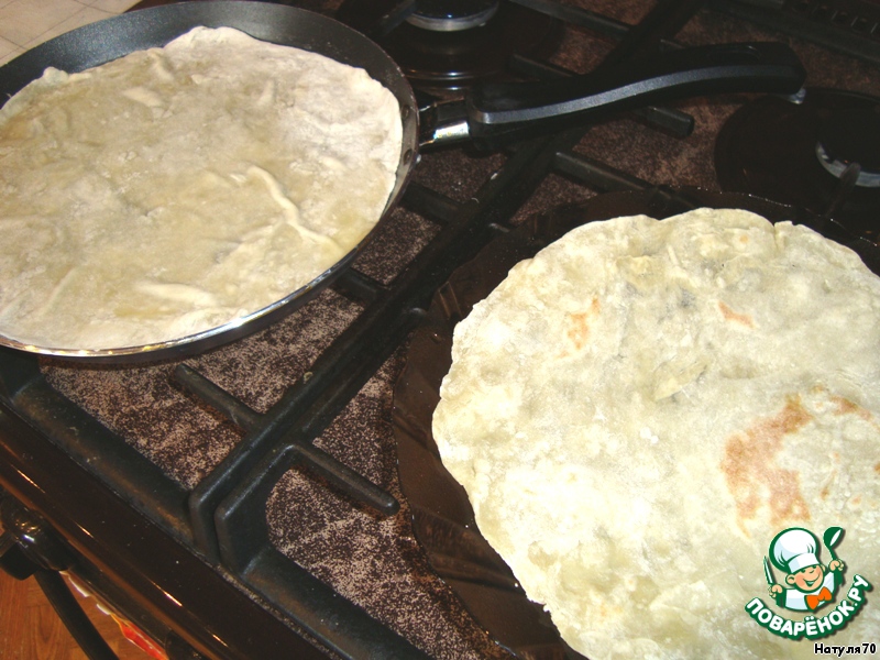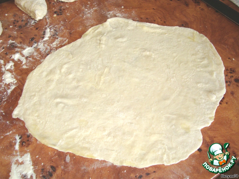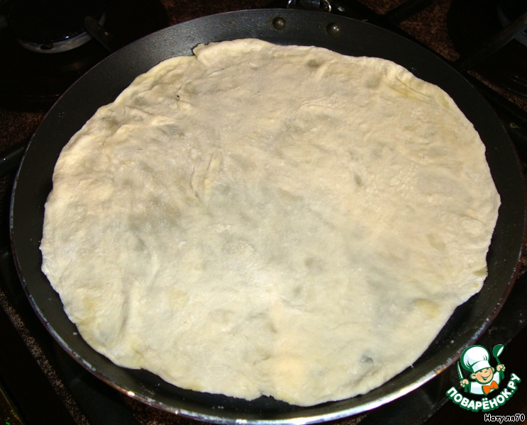 А теперь раскатываем блинчик как можно тоньше. То, что форма получается не совсем круглая - это ничего страшного. При выкладывании блинчика на сковороду Вы расправите его по ней. Это очень просто! :-)