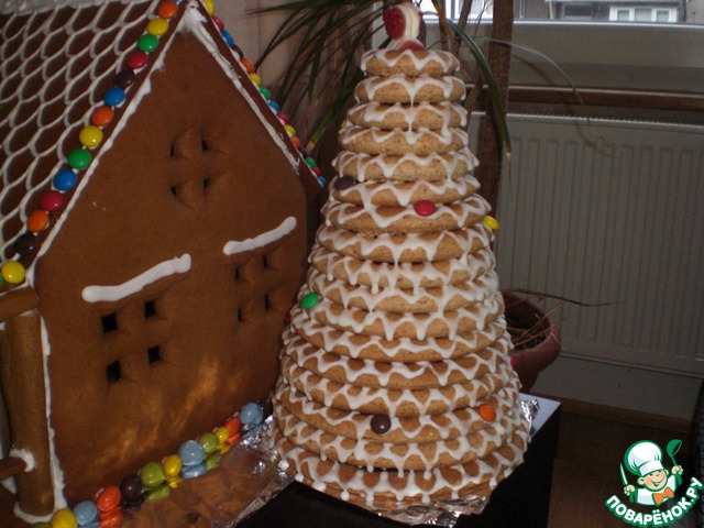 Но это лакомство можно испечь и без формы. Просто нарисовать на пергаменте круги, начиная с диаметра 18 см, каждый последующий круг на 0.5 см меньше предыдущего. Тесто получается очень густое, как на печенье, по противню оно вряд ли растечется. Единственное, что форма делает печеньку выпуклой с обеих сторон. Если печь на противне, то одна сторона будет плоская, но это скажется только на высоте конечного изделия.