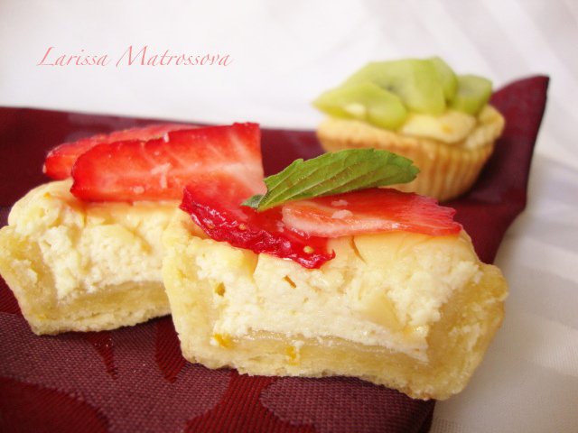 | Нежное песочное тесто, ароматный творожный крем и сладкие фрукты... Какое отменное сочетание! Попробуйте, этот десерт вызовет восторг! Данный рецепт я бы хотела посвятить прекрасным девушкам - виртуальным подружкам. Надеюсь, вы поймете, о ком речь! А также впервые на сайте, как и обещала... РЕЦЕПТ-РЕБУС !!! |