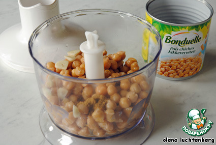 Пока тесто отдыхает, сделать начинку. Горох перемолоть в пюре с чесноком, зирой и ложкой воды.