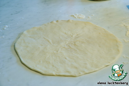 Колобок растянуть руками в лепешку диаметром где-то 20 см.