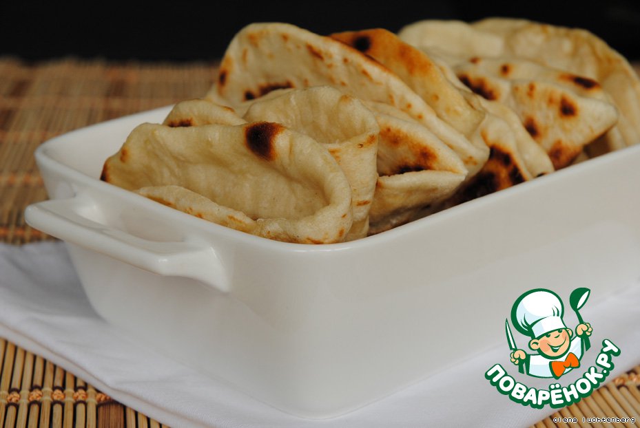 Лепешки класть на горячую, сухую сковороду с тефлоновым покрытием. Когда одна сторона зарумянится, перевернуть и готовую сторону смазать тоненьким слоем растительного масла, то же самое проделать и с другой стороной, когда она будет готова.