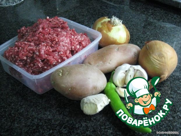 когда фарш хорошо прожарился она развела в ГОРЯЧЕЙ воде ложку куриного бульона, или просто ГОРЯЧЕЙ воды, примерно грамм 150 и добавила в фарш, и помешивая протушила еще минут 10.