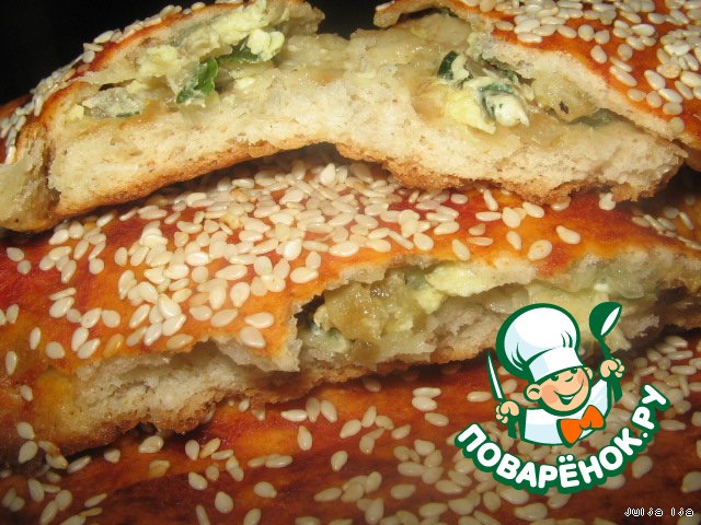 | Лепeшки из дрожжевого пшенично-ржаного теста с отрубями, с начинкой из лука, яйца и оливок. Можно подавать с супом или просто так. Поверьте, это очень вкусно, а делать не так сложно, как кажется сначала. На конкурс "В мире животных". |