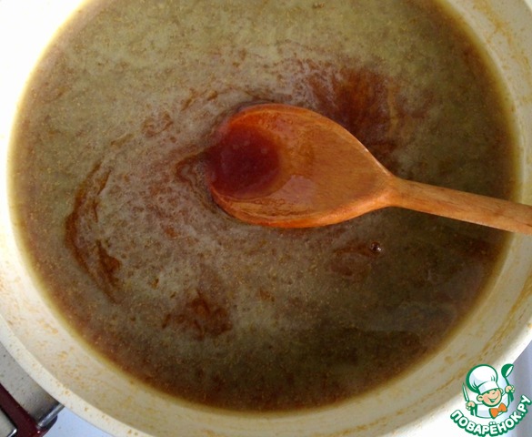 1. Всыпьте в сковороду 1 стакан сахара, на медленном огне доведите его до золотисто-коричневого цвета (расплавив)