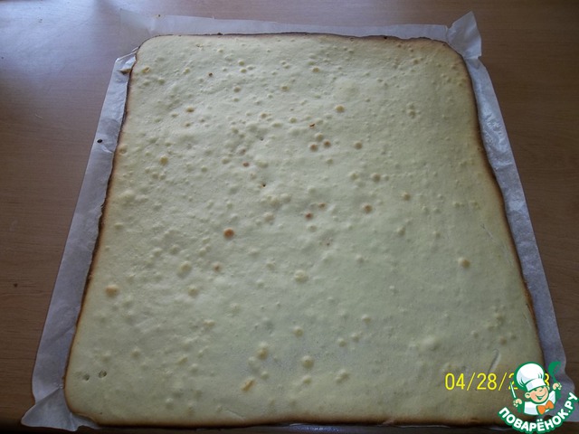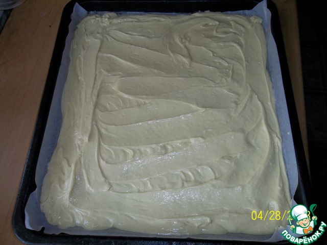 Противень застилаем бумагой для выпечки, выкладываем тесто и распределяем равномерно по поверхности. Ставим в разогретую духовку 180* на 20 минут.