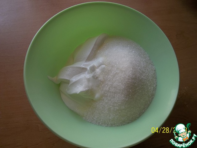 Пока наше тесто находится в духовке, приготовим крем. В сметану добавить сахар и перемешать. Оставить при комнатной температуре для полного растворения сахара.