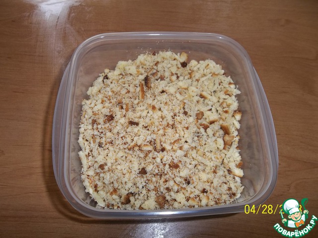 Оставшиеся обрезки натираем на терке в мелкую крошку.