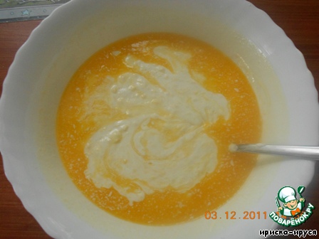 Для начала растопим маргарин. Когда он немного остынет, добавляем желтки, сметану, кефир, сахар. Все тщательно перемешиваем, после чего добавляем соль, соду и муку. Замешиваем тесто, должно не прилипать к рукам.