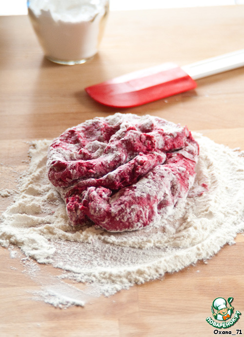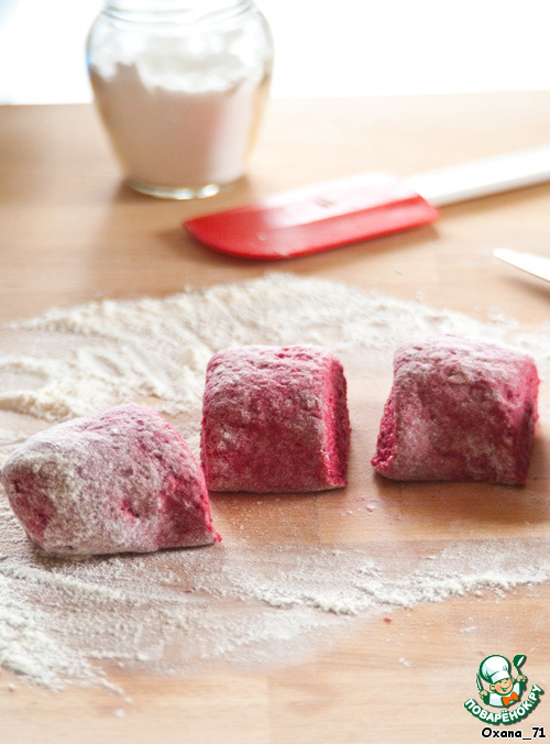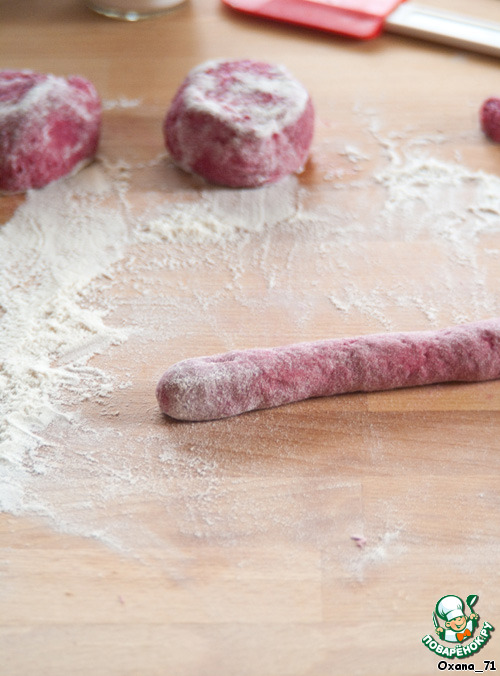 Замесить не крутое тесто, так как оно не должно быть крутым и не сильно прилипать к рукам. По необходимости добавить немного крахмала или муки, но не пересыпать
