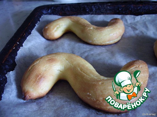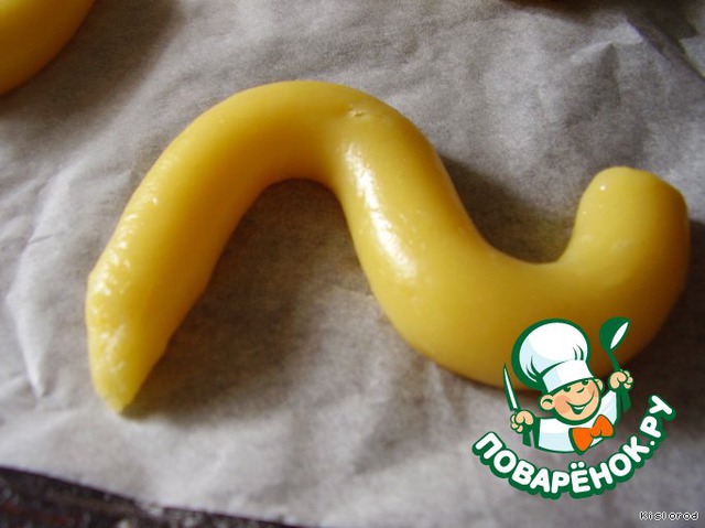 и выдавливаем полоски похожие на буквы "S", ставим в разогретую духовку на 15-20 минут