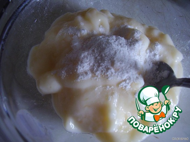 йогурт смешиваем с крахмалом и слегка взбиваем