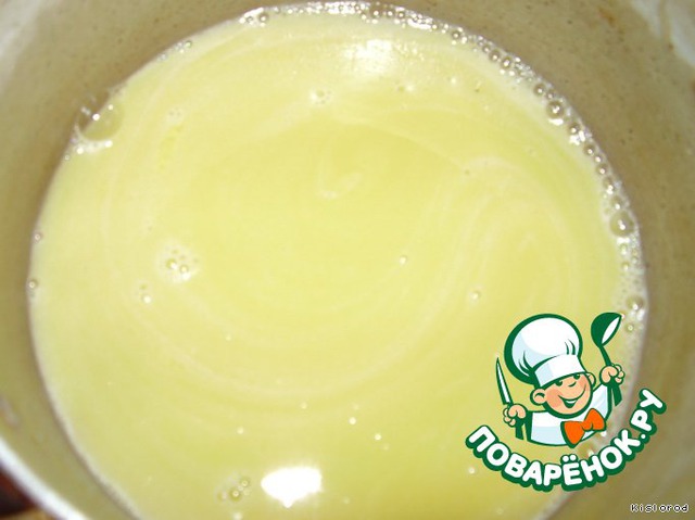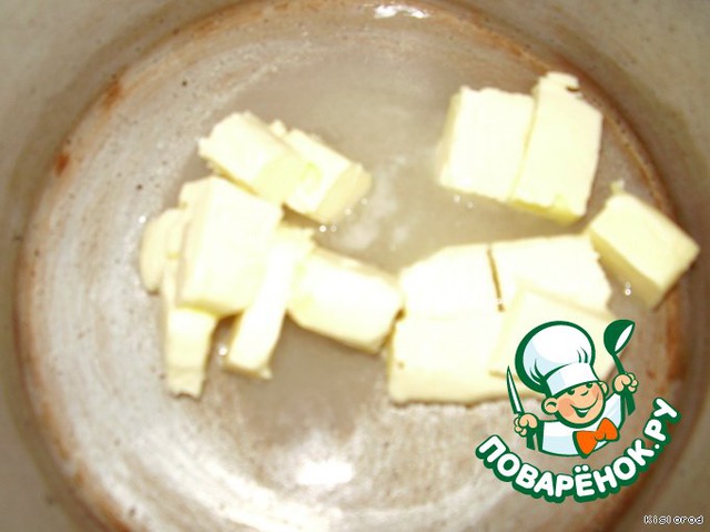 в кастрюльку налить воду, положить сахар, соль и сливочное масло, поставить на огонь