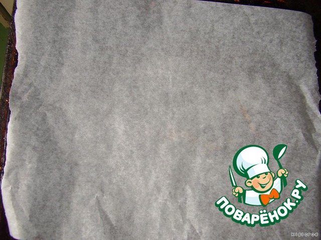 форму выстилаем пергаментной бумагой, разогреваем духовку до 180 градусов