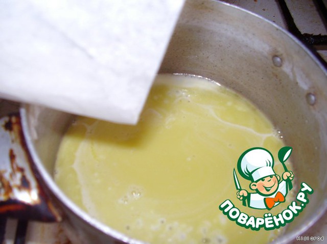 не снимая с огня кастрюльку всыпать муку, свернув листок желобком и продолжать помешивать