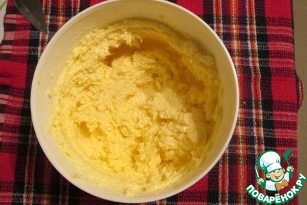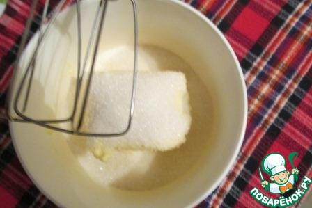 Мягкое сливочное масло засыпаем сахаром и взбиваем.