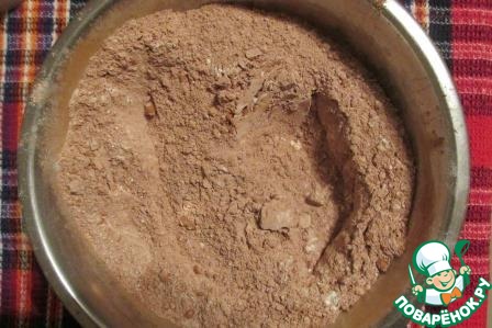 В отдельной миске смешиваем муку, какао-порошок, соль и разрыхлитель для теста.